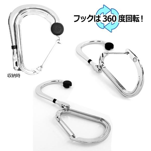 | カラビナから360度回転するフックが出てくるので使い方無限大!! |