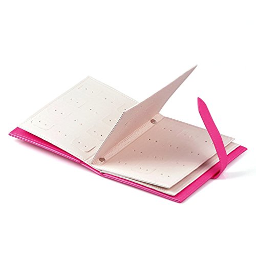 TANKYE Portable Travel Jewelry Organizer PU Leather 42 Pairs Earring Holder Earrings Ear Stud Case Eardrop Storage Book (Rose red)