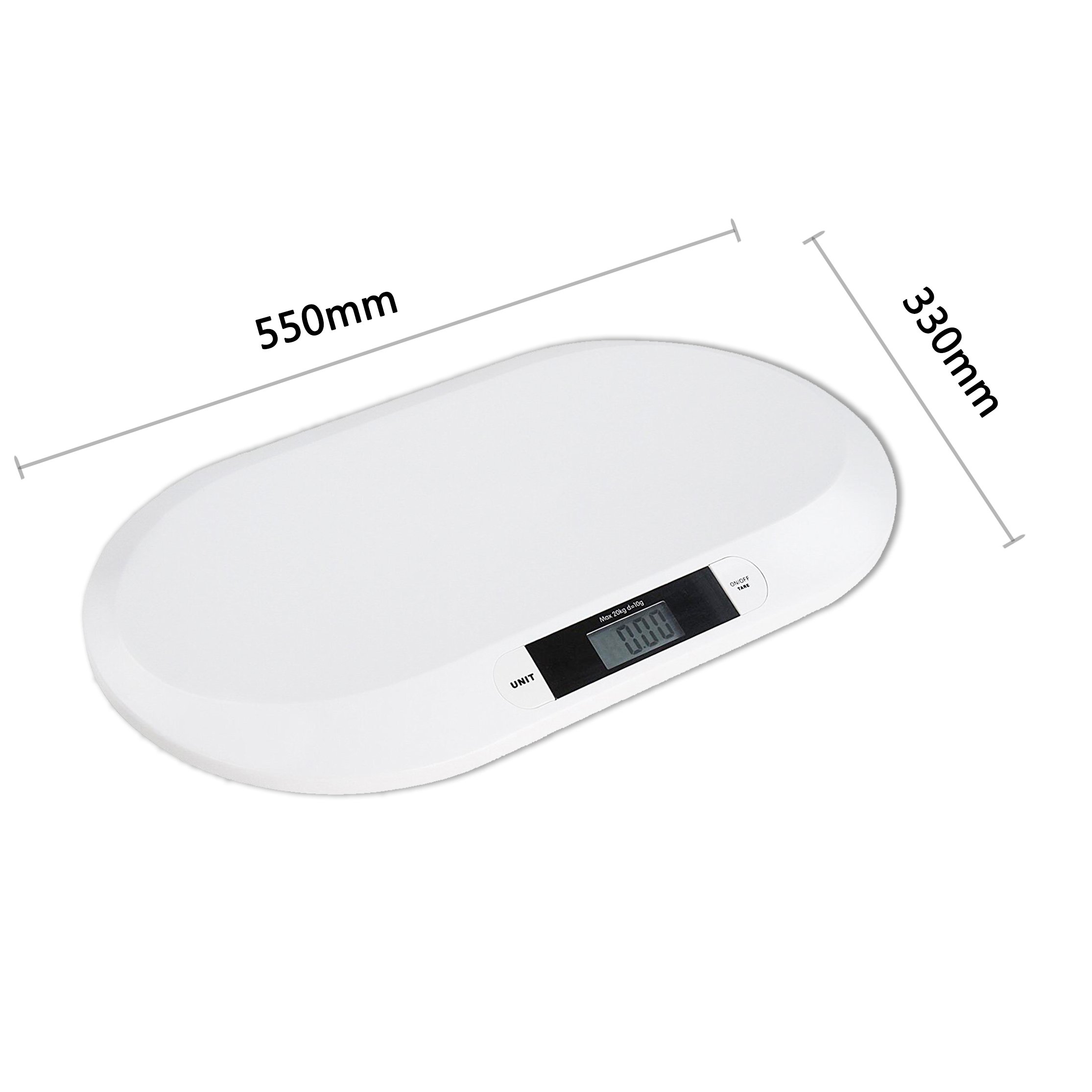 Accuracy: 10 g Weight unit: kg / lb Power source: Two batteries (included) Product size: 550 * 330 * 27 mm Product weight: 1.6 kg