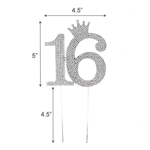 VERSATILE & ADJUSTABLE - The 4.5 inch prongs can be cut down in length as desired or can simply be cut off completely after use so you can keep it as a keepsake! "16" topper measures approx 5 inch tall x 4.5 inch width (not including prongs)
