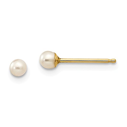 Solid 14k Yellow Gold 3mm FW Cultured Pearl Earrings