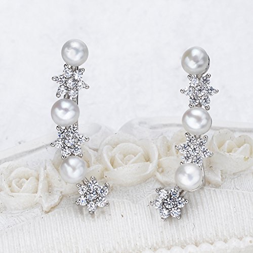 SGS Certified item, EleQueen Original Patented Design, the Highest Quality Standards in Jewelry; Environmental friendly high polished finish Genuine 925 Sterling Silver with Freshwater Cultured Pearls and Cubic Zirconias, this jewelry shines with beauty and adds a luxurious look.