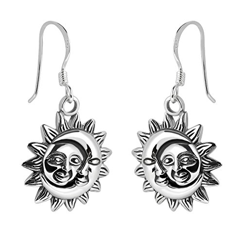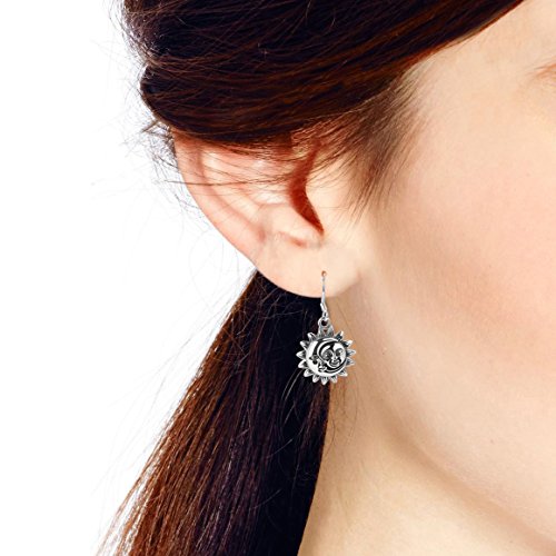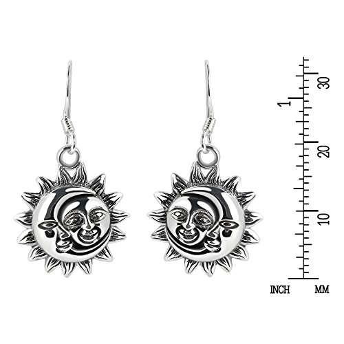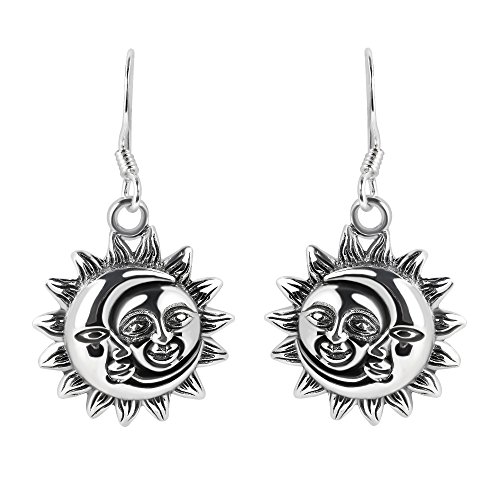 Sun and moon combine in these beautiful earrings handmade by Thailand's expert artisan Khun O. The earrings feature a personified version of a crescent moon and celestial shining sun engraved into sterling silver .925 with polished and oxidized contrasts. A fun, symbolic and fashionable pair of earrings for women of all ages and styles. PLEASE NOTE: The handcrafted nature of this product will produce minor differences in design, sizing and weight. Variations will occur from piece to piece, measurements may vary slightly.AERAVIDA works directly with gifted and talented Artisans from all over the world. At the core of our philosophy is fair trade and fostering a sustainable future for our Artisans.