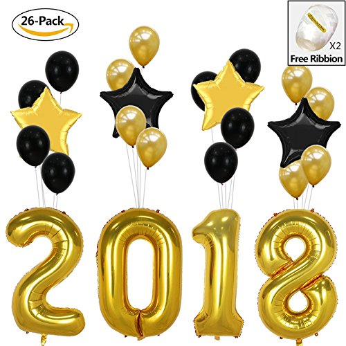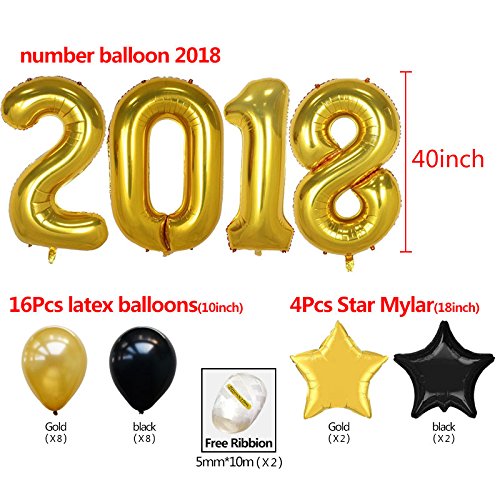Studio : Scorpio Publisher : Scorpio Binding : Health and Beauty Product Description Features: Made of food grade material,safe and non-toxic Strong and light,can be float just fill 90% of the balloons' space with hydrogen or helium Color uniform and beautiful,even can be used as a mirror Can be reused,use the straw to deflated balloons after party end Package Includes: 40 Inch Number "2018" Balloons*1 12inch Gold black latex balloon each color 8pcs ,18inch black gold star foil balloon each color 2pcs and free Ribbion as gifts How to Use Foil Balloons: Inflate slowly,just fill 90% of the balloons'space that could allows the balloon to expand completely 0