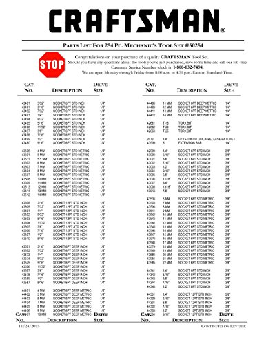 Craftsman 254 PC Mechanics Tool Set with 75 Tooth Ratchet