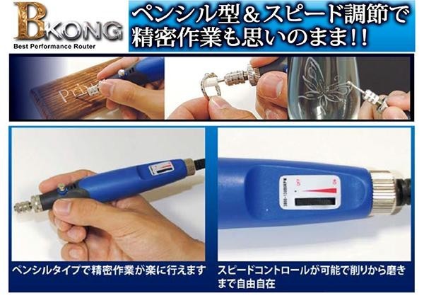 ペンシルタイプで精密作業が楽に行えます。スピードコントロール可能なので、削りから研きまで自由自在!! |