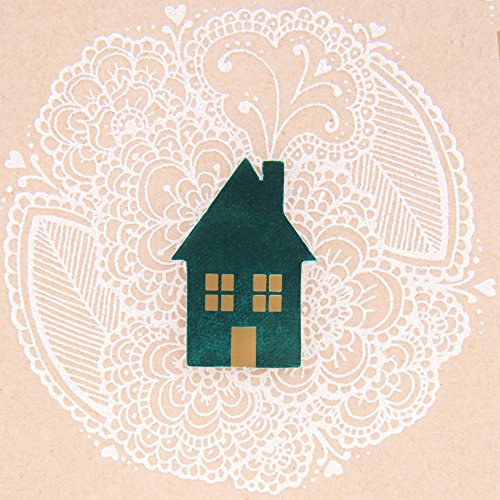- Reach out to friends, family, coworkers, and more this season with this card designed with a blue-green house on a white patterned disk on a brown background. Printed on high quality paper stock.