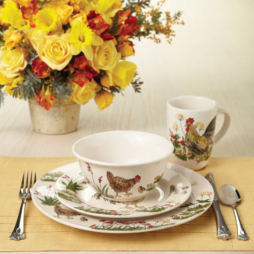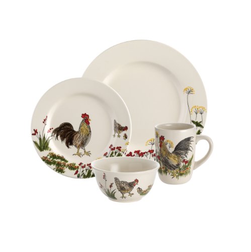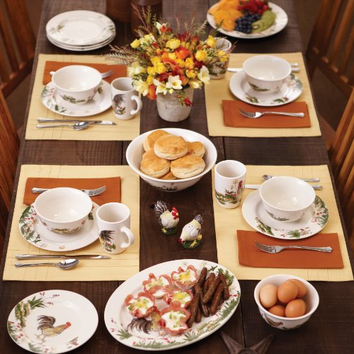 Paula Deen Signature Dinnerware Southern Rooster 4-Piece Stoneware Soup and Pasta Bowl Set