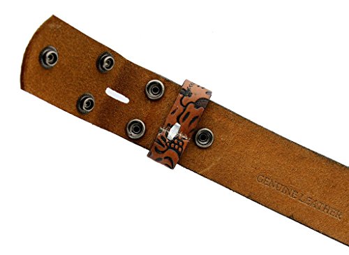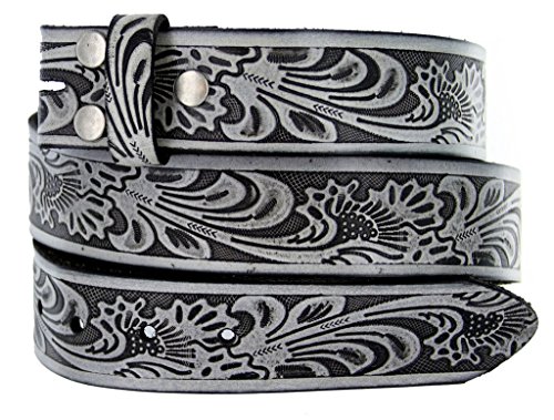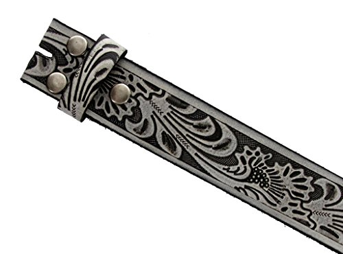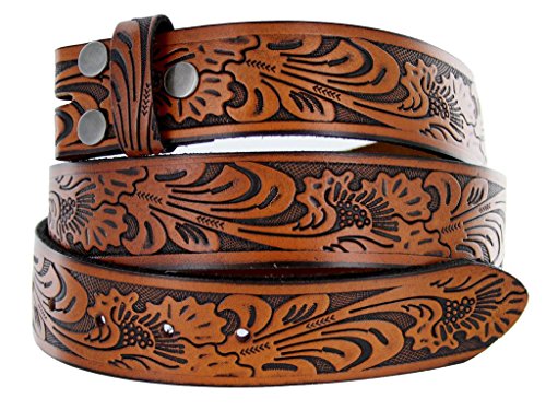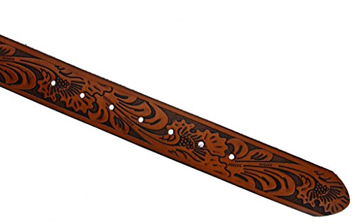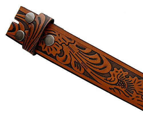 -. Feature : Solid One-Piece Leather / Western Style Leaf Pattern / 1-1/2" (38mm) Wide, 5 holes for size adjustment / Sizing: Measure around where you wear the belt, with your pants on, and order the closest size. / This belt strap is measured in inches, from the end of the strap where the buckle is attached, to the middle hole at the tip end.