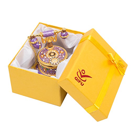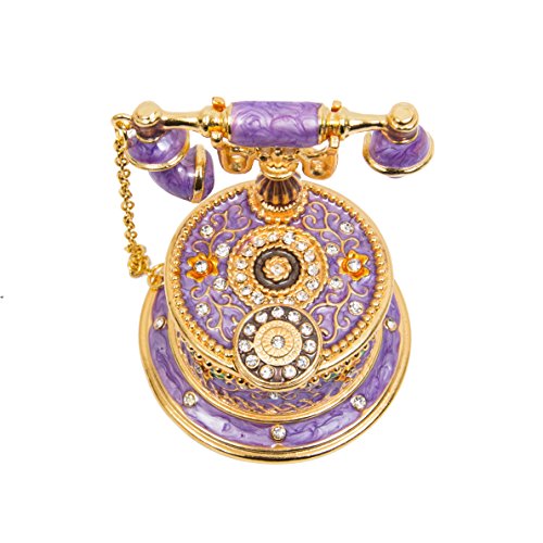 QIFU-Hand Painted Enameled Telephone Decorative Hinged Jewelry Trinket Box Unique Gift For Home Decor
