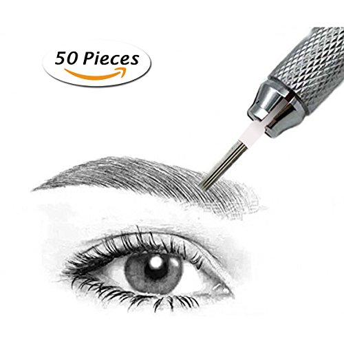 Hair Stroked Round Needles for Eyebrow Tattoo Manual Microblading Pen Semi Permanent Makeup Fog Pen Needle Pack of 50 pcs (3R)