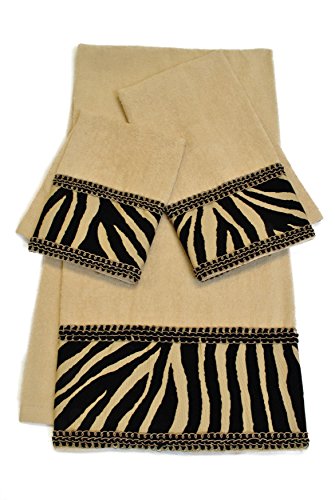 - This 3-piece Sherry Kline zuma velour towel set features embellished zebra stripe flocked bands with light gold and black Braid trim.