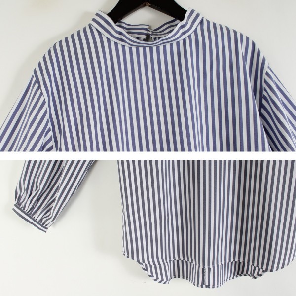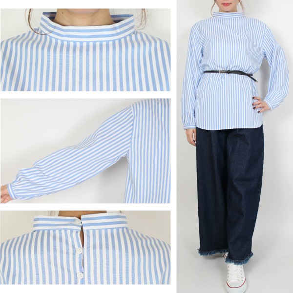 先染めストライプのハイネック ロングブラウス