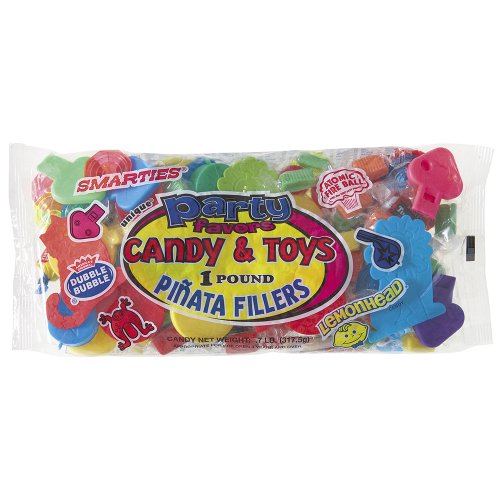 • This bag of pinata stuffers includes small party favors and candy from Double Bubble, Smarties, and Lemonhead