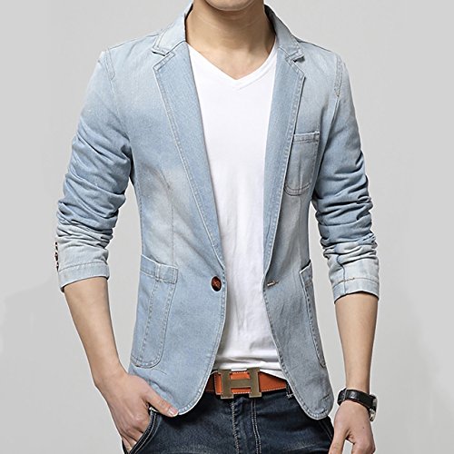 -. Feature : スマートなおしゃれを演出する、この時期必須の長袖テーラードデニムジャケットが登場! / シンプルなデザインのため、このジャケット1枚で様々なコーディネートを楽しめます。 / ワンランク上のスタイリッシュな大人の着こなしを実現しよう! / 【カラー】:ライトブルー、ダークブルー / 【サイズ】:M~3XL