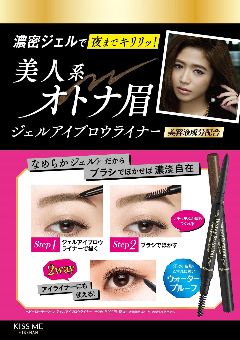With dense coloring gel Jelly eyebrow liner that keeps crisp and beautiful eyes until night
