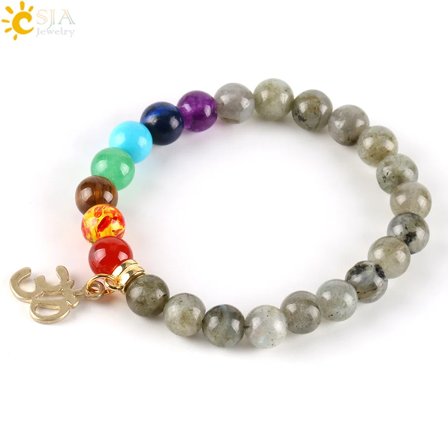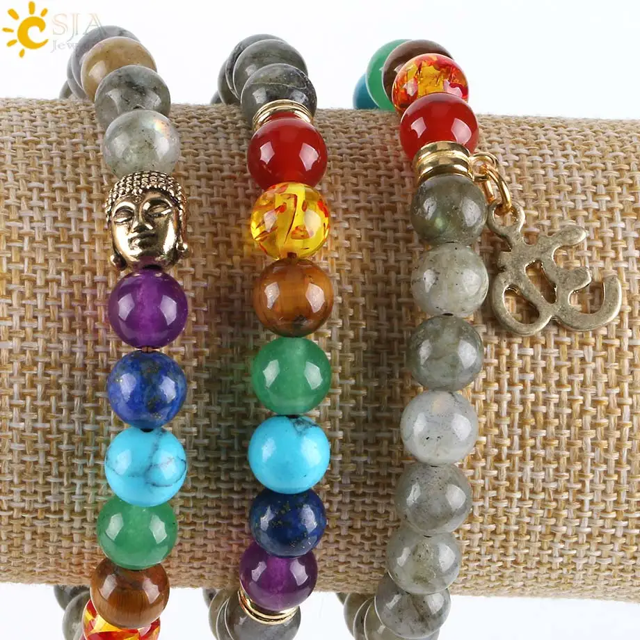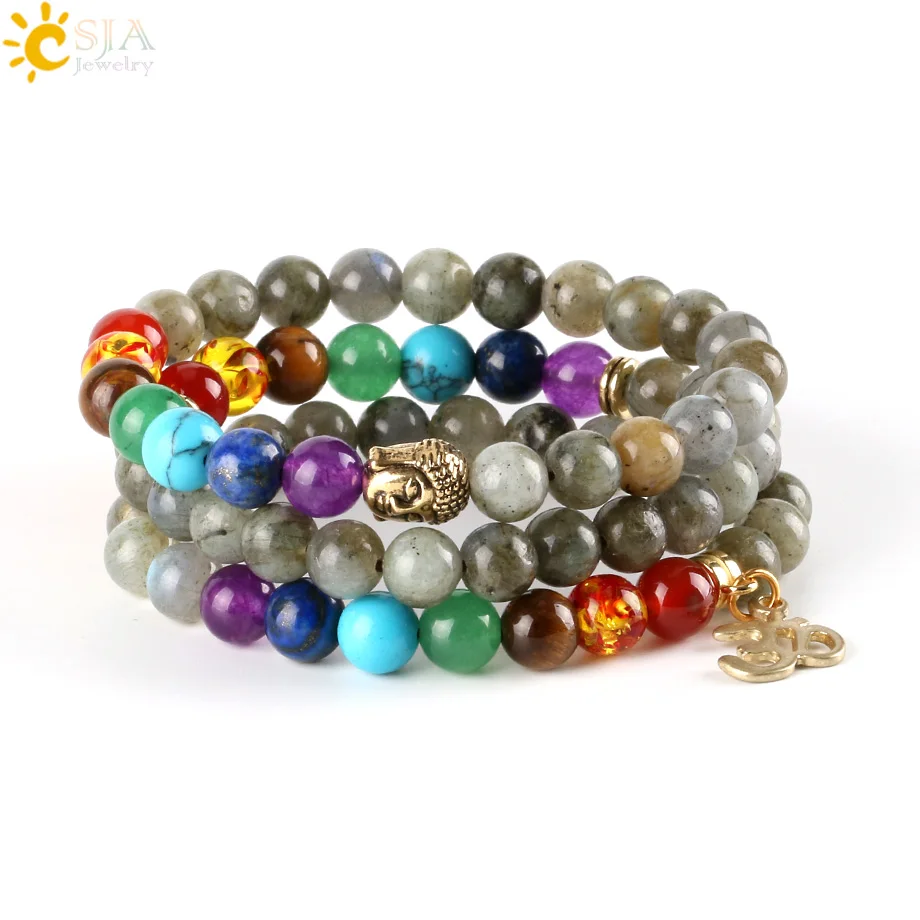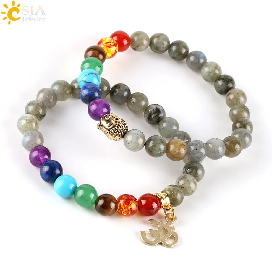 Bracelets Feature:Round Stone Beaded + OM Buddha Charms + Elastic
