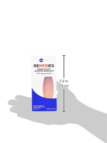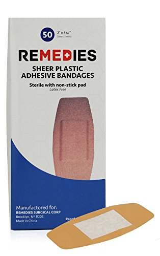 -. Feature : Manufactured of strong sheer ventilated plastic, coated with a long lasting adhesive / Non-stick pad for comfort and fluid absorption / Packaged in dispenser boxes, 50 extra large bandaids for convenient handling / 2 Inches x 4.5 Inches bandage / A Sterile, ready to use protective dressing for cuts and abrasions, Latex free