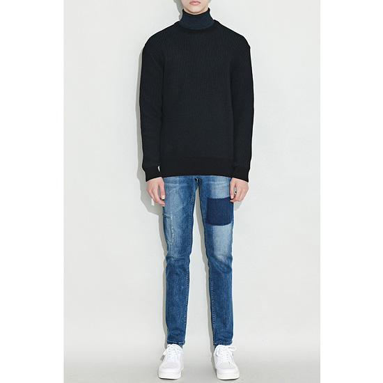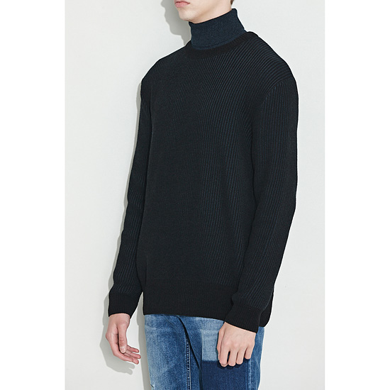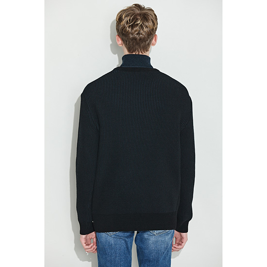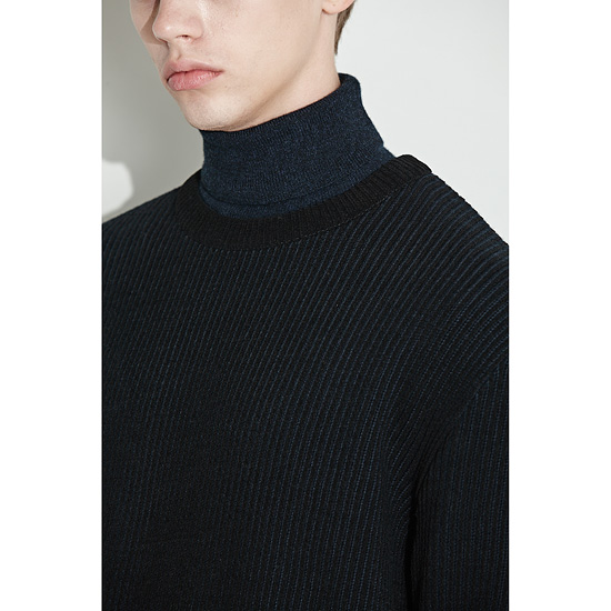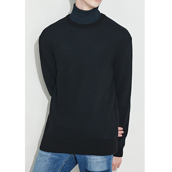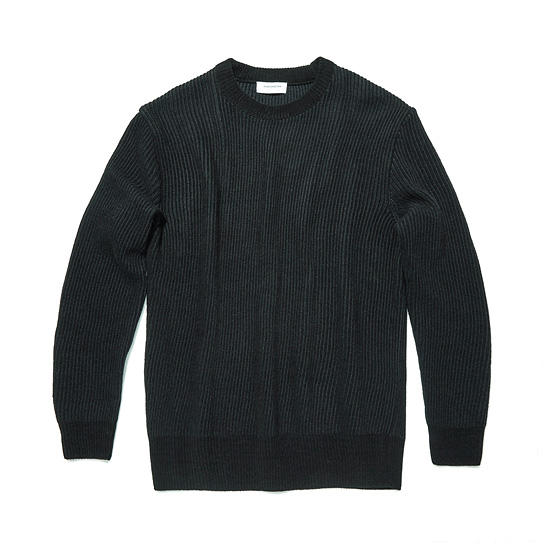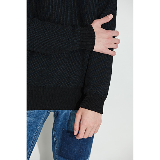 은은한 투톤 조직으로 편직한 남성 라운드 풀오버.