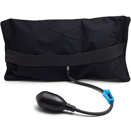 - Feature : Inflatable lumbar cushion perfect for traveling, working, or driving. / High-quality; Waterproof PVC with nylon strap and hand bulb for easy adjustablity / A great way to remove strain and pressure from your lower back muscles caused by slouching. The cushion promotes ergonomic desk posture by encouraging you sit straighter. / Bolstered sides and a mid-back extension help keep the wedge centered in your seat and your spine properly aligned.