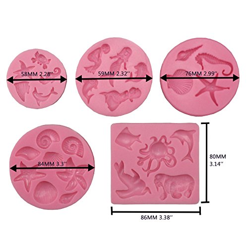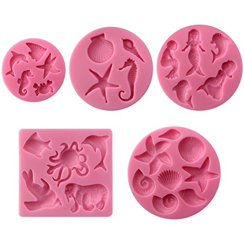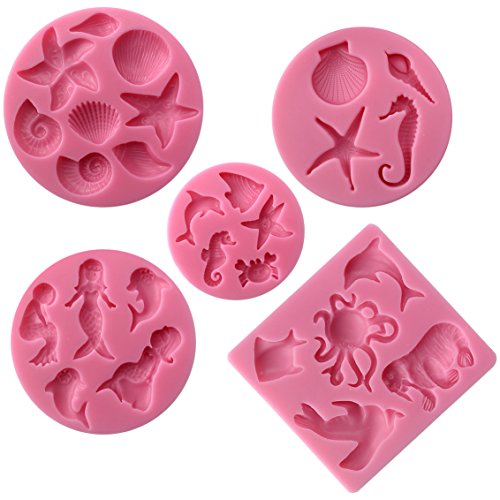 Funshowcase Mini Sea Creatures Summer Beach Theme Candy Silicone Mold for Sugarcraft, Cake Decoration, Cupcake Topper, Fondant, Jewelry, Polymer Clay, Crafting Projects, 5 in Set