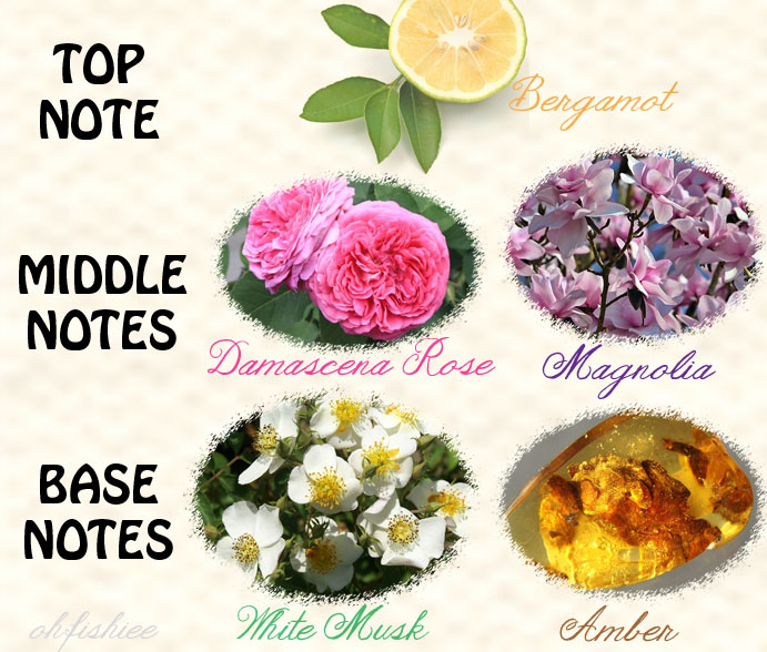 by magnolia for a modern touch. It ends in a base of white musk and amber that will linger on your skin.