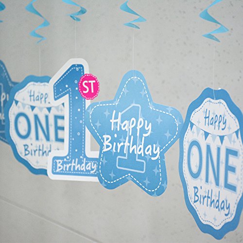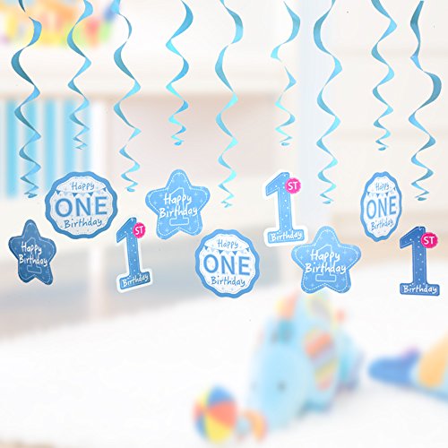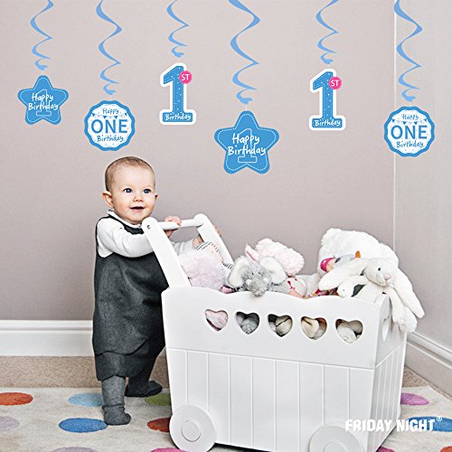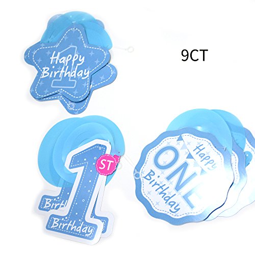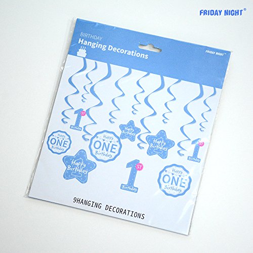 Happy birthday!!!!!^_^ The 1st birthday for the little baby! Decoration for baby's 1st birthday party with many foil swirl hanging Made of recycled paper,environmental protects but durable, convenience and safety that the children easy to hanging in the room BLUE PINK theme that you can choose for baby boy and baby girl, lovely design with the stars pattern and number cutouts - Packaged in: total: 9 pcs ★3 hanging of "1st" ★3 hanging of stars ★3 hanging of "one" - Hope the products will satisfied with you Friday night wish you have a wonderful life If you with any problems,please contact us^_^ 0