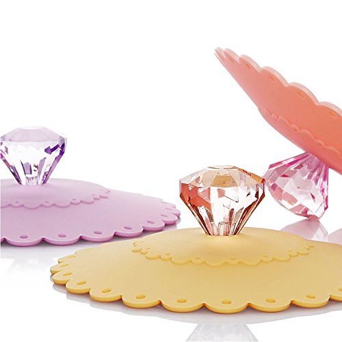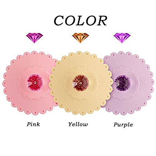 Mosuch Cup Lids Silicone Glass Cover Suction Lids for Coffee and Tea Cup Set of 3 Pink Yellow Purple