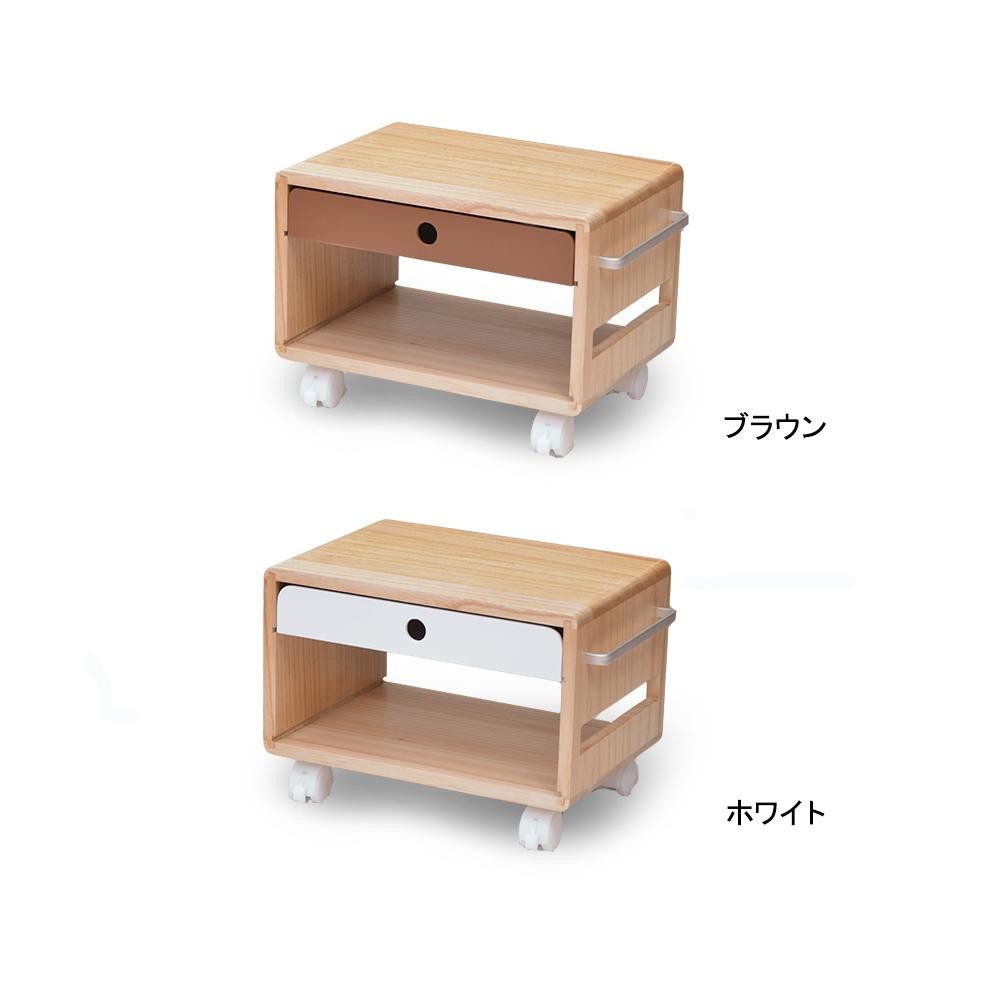 | 小物置きや、テーブル使いに便利で、移動が楽なキャスターと取っ手付きのワゴンです。 |