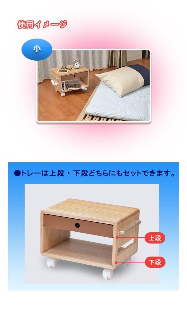 | 仕様 | 完成品(キャスターのみ取り付け) 【各トレー設置時内寸】 上段:幅32.5×奥行24×高さ5cm 下段:幅32.5×奥行24×高さ17.2cm |