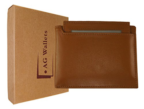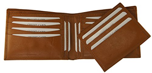 Men's Multi-card Compact Removable Outside Id Bifold Premium Leather Wallet Tan