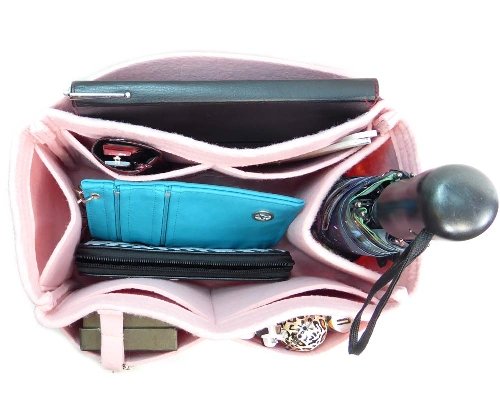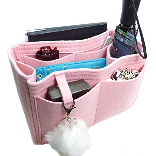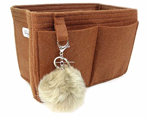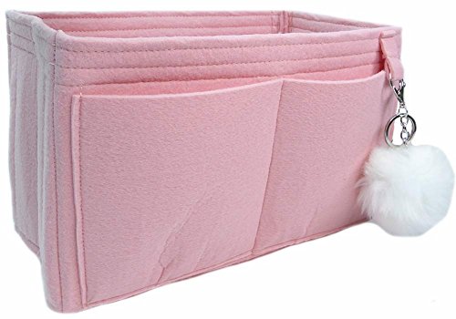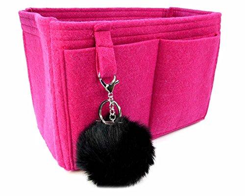 Product Description Felt handbag Purse organizer inserts not only help you be more organized, they also add some great structure. This size was meant to fit the Louis Vuitton Neverfull MM, but can fit in most bags with similar dimensions. This organizer measures approx. 11.5" long x 8" tall x 7" wide. It has an end "pocket" for keeping large items like a water bottle or umbrella upright. The end "pocket" is open at the bottom. It has 5 inside pockets that measure about 4.5 "wide x 6" tall. Along the back is a long pocket for a tablet or e-reader. Along the front are 2 pockets that measure 5" wide x 6" tall. This style includes a fun, bonus pom-pom key chain purse charm. The pom-pom may vary in size and color. All measurements are approximate. ***All organizers are use at your own risk. We are not responsible for any transfer of color onto your linings or items you carry in any purse organizer. It doesn't happen often, but we have heard of red dye rubbing off on phone cases and other light colored items. It is possible for very light colored linings to be damaged as well. Please choose your organizer color carefully to avoid any damage. Our liability is limited to the cost of the purse organizer. Any size suggestions are guidelines only and not guaranteed - depending on what you carry in your bag, and your preferences, you may like a different size than those suggested. 0