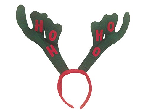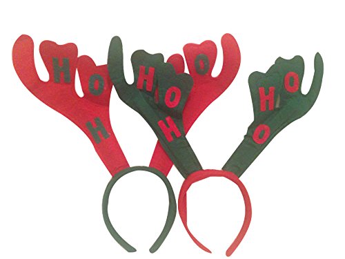 Set of 2 - Red & Green - Christmas Reindeer Antlers (Head Band) Ho Ho Ho