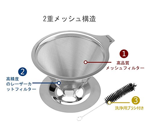 원본상품명: コ?ヒ?ドリッパ? 【2層メッシュ】 Kitclan ステンレスフィルタ? 一?型 洗?用ブラシ付き ペ?パ?フィルタ?不要 4杯用 【一年間安心保?】