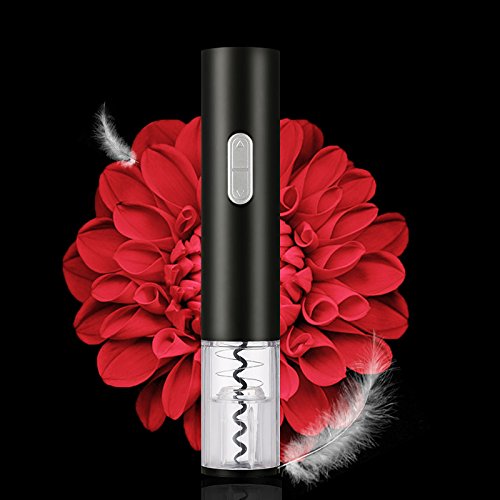 Alinshi Automatic Wine Opener - Electric Wireless Bottle Opener - Battery-Operated Corkscrew - With Foil Cutter / Stand (Black)