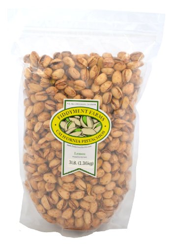 -. Feature : 3 pounds of our gourmet Lemon flavored in-shell pistachios in a convenient, resealable bag. / A delicious and healthy snack, naturally Gluten Free and Non-GMO. / Pistachios processed in small batches to ensure freshness and top quality. / Naturally opened California grown jumbo sized pistachios. / The premier gourmet pistachio company since 1968.