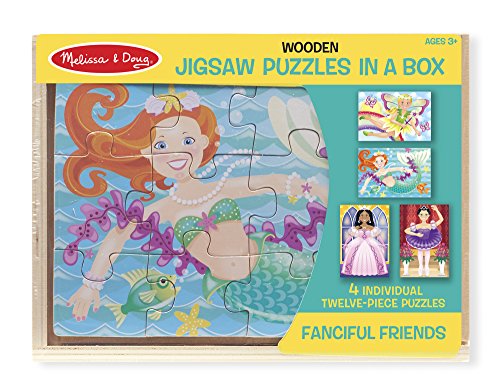 -. Artist : Melissa & Doug -. Binding : Toy -. Brand : Melissa & Doug -. Department : baby-girls -. EAN : 0094801083010 -. Feature : Made using the highest quality materials / Tested to be safe and durable / Great fun for your baby and child / Sturdy wooden box stores the four different jigsaw puzzles / 4 jigsaw puzzles have 12 pieces each / Puzzles depict a princess, ballerina, fairy and mermaid / Backs of pieces are shape-coded for easy sorting / Each completed puzzles is 6.75 inches by 4.5 inches -. IsAdultProduct : 0 -. ItemPartNumber : 9520 -. Label : Melissa & Doug -. LegalDisclaimer : IN NO EVENT, REGARDLESS OF CAUSE, SHALL Quick For You BE LIABLE FOR ANY INDIRECT, SPECIAL, INCIDENTAL, PUNITIVE OR CONSEQUENTIAL DAMAGES OF ANY KIND, WHETHER ARISING UNDER BREACH OF CONTRACT, TORT (INCLUDING NEGLIGENCE), STRICT LIABILITY OR OTHERWISE, AND WHETHER BASED ON THIS AGREEMENT OR OTHERWISE, EVEN IF ADVISED OF THE POSSIBILITY OF SUCH DAMAGES. -. Manufacturer : Melissa & Doug -. Model : 9520 -. MPN : 9520 -. PackageQuantity : 1 -. PartNumber : 9520 -. ProductGroup : Toy -. ProductTypeName : TOYS_AND_GAMES -. Publisher : Melissa & Doug -. Studio : Melissa & Doug -. Title : Melissa & Doug Fanciful Friends Puzzles in a Box -. UPC : 094801083010 -. Warranty : No Warranty