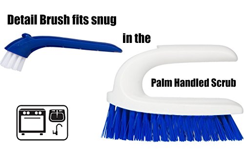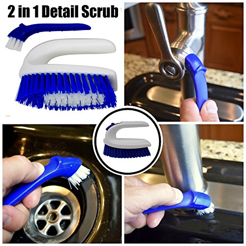 2 in 1 EASY HANDLE SCRUB AND DETAIL BRUSH HELPS SINKS SPARKLE Again. Use the the scrub brush to put power behind your favorite sink cleaner. The detail brush fits conveniently inside the handle. It's perfect for those nooks and crannies in the kitchen like sink drains, faucets, backsplashes, microwaves and more.