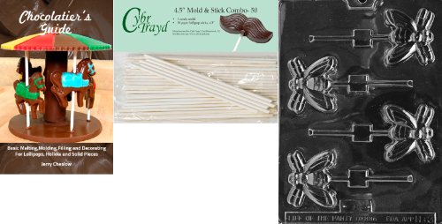Cybrtrayd 'Fly Lolly' Halloween Chocolate Candy Mold with 50 4.5-Inch Lollipop Sticks and Chocolatier's Guide