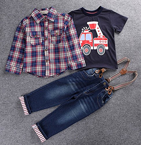 -. Title : Baby Boy Cartoon 3pcs Plaid Shirts +Car P.R.Inting T-Shirt +Jeans Clothing Sets Outfits