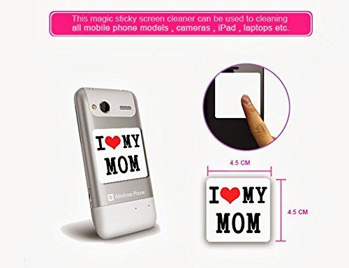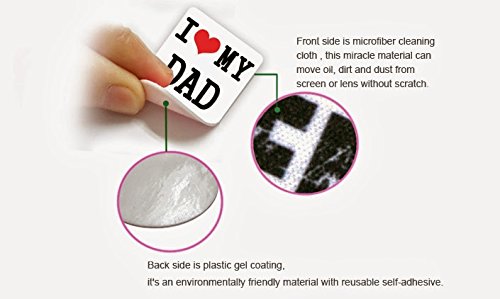 - Title : Sticky Cleaner I love mom & I love dad 2-in-1 Microfiber Screen Cleaner Sticker for iPhones, smartphones, tablets and touchscreen other electronic digital devices - Size 1.75" x 1.75" (Height x Width) x 2 pcs. in 1 pack