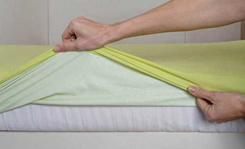 -. Feature : Waterproof 2 in 1 fitted sheet and mattress protector. / Made from Tencel, a soft, breathable, and 100% natural textile. Fabric designed for year-round comfort: warm in winter, cool in summer. / Hypoallergenic, recommended for sensitive skin. Anti-bacterial with zinc oxide in a patented process with skin regenerative benefits. Fabric is odor-reducing for freshening effect. Dust mite proof. / Available sizes fit standard twin (38 x 75 x 9-12 in) or full size (54 x 75x 9-12 in) mattresses. Extendable skirt that accommodates up to 12" mattress thickness. / Machine washable and tumble dry. Conforms to Oeko-Tex and strict EU Standards.