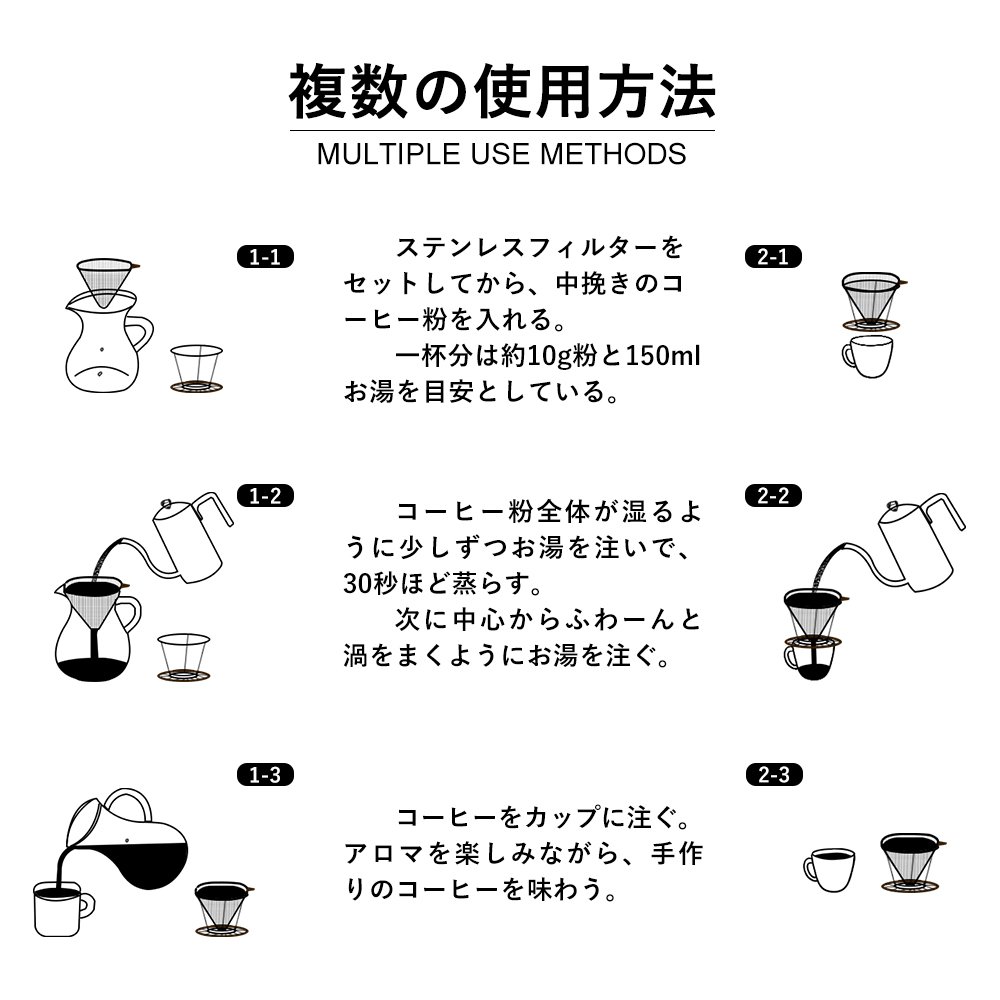 1. After setting the stainless steel filter, put the ground ground coffee powder.