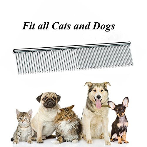 Stainless Steel Pet Comb, VICTHY Pet Grooming Tools, Combs for All Dogs and Cats Removes Fleas/Tangles/Mats/Loose Hair and Dirt