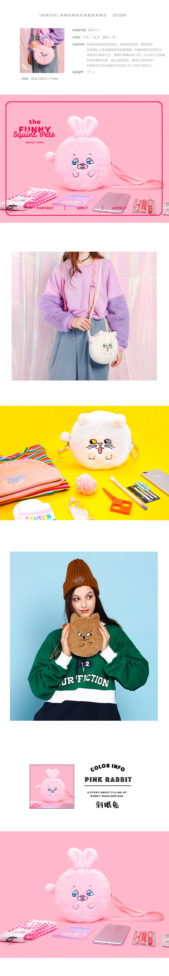 Bentoy squint動物ラウンドぬいぐるみバッグかわいいソフトガールピンク超かわいいウサギの形