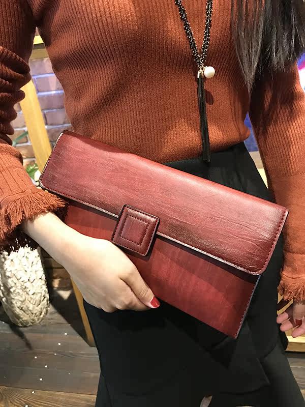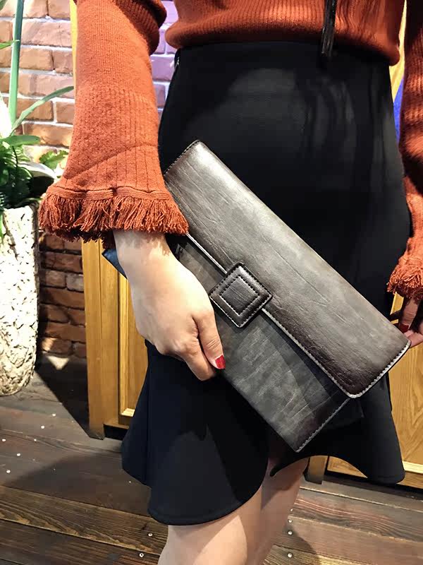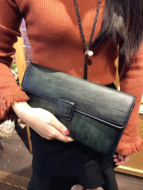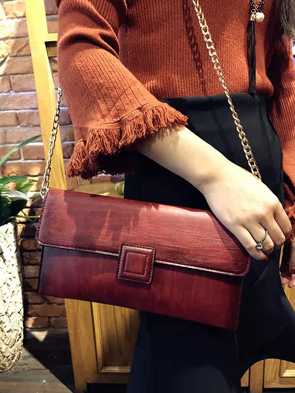 软皮手拿包女新款手包时尚潮流女士手挽包个性链条单肩斜挎包