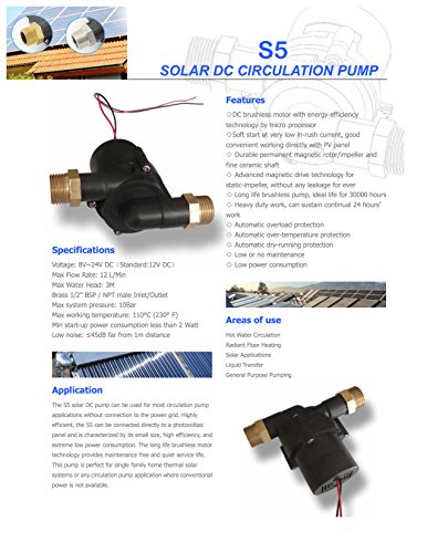 S5-15PV-SS - 3 GPM - Food Grade - 12V Solar Hot Water Pump - Can be run by a 15W solar panel