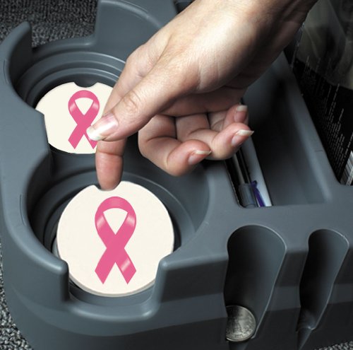 CounterArt Absorbent Stoneware Car Coaster, Breast Cancer Ribbon