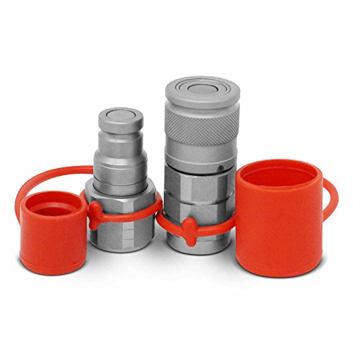 3/8" Flat Face Hydraulic Quick Connect Coupler Set w/ Dust Caps, 1/2" NPT Thread