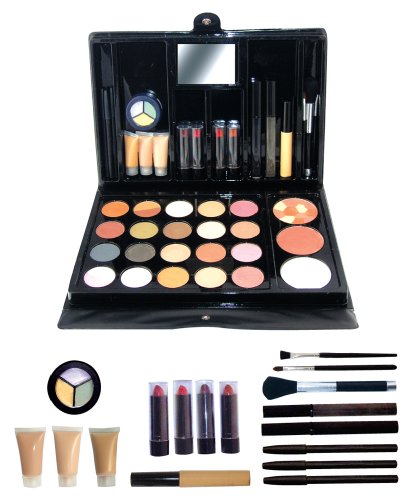 Studio : FantaSea Publisher : FantaSea Binding : Health and Beauty Product Description Superior quality aloe vera based cosmetic collection, featuring high fashion colors in a deluxe soft padded case with snap closure. Each kit contains the following: 17 eye shadows, 3 blushes, 1 mosaic pressed powder, 1 dome powder, 1 finishing powder, 4 lipsticks, 1 clear lip gloss, 2 lip pencils, 1 eye pencil, 2 mascaras, 3 shades of liquid foundation, 1 lipstick applicator brush, 1 blush brush, 1 eye shadow brush, 1 mirror, 1 concealer pot (yellow, green and lavender).